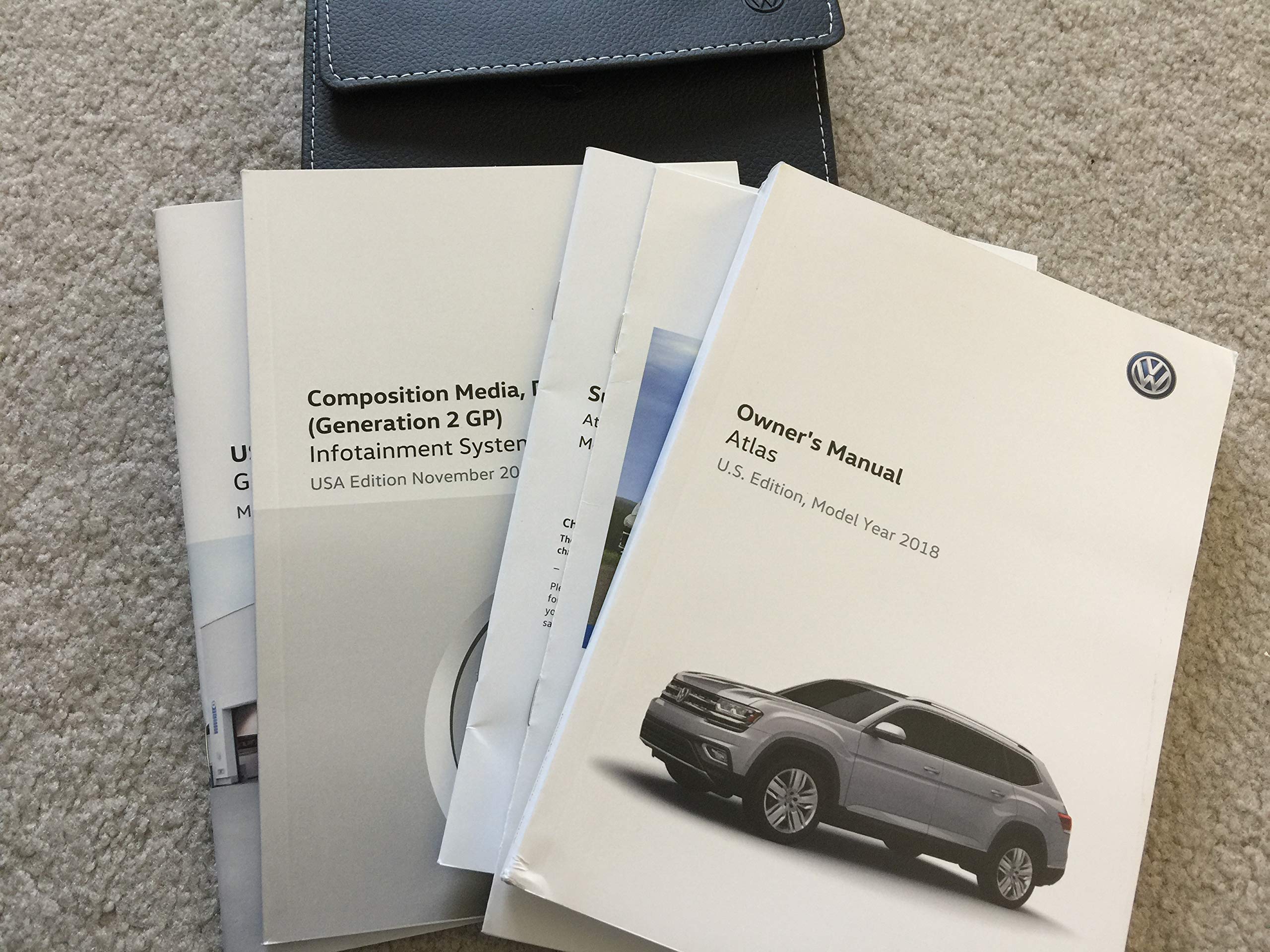 This image displays the front cover of the official 2018 Volkswagen Atlas Owner's Manual, featuring the Volkswagen logo and vehicle model. The cover design typically includes the vehicle's name and model year, providing immediate identification of the manual's content.