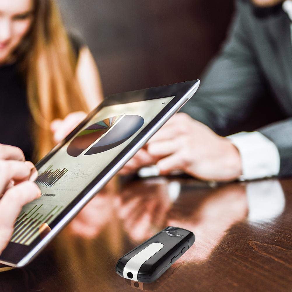 Image: The U8 Mini DV DVR USB Flash Drive Camera shown in a typical use scenario, placed on a table during a business discussion, highlighting its discreet design.