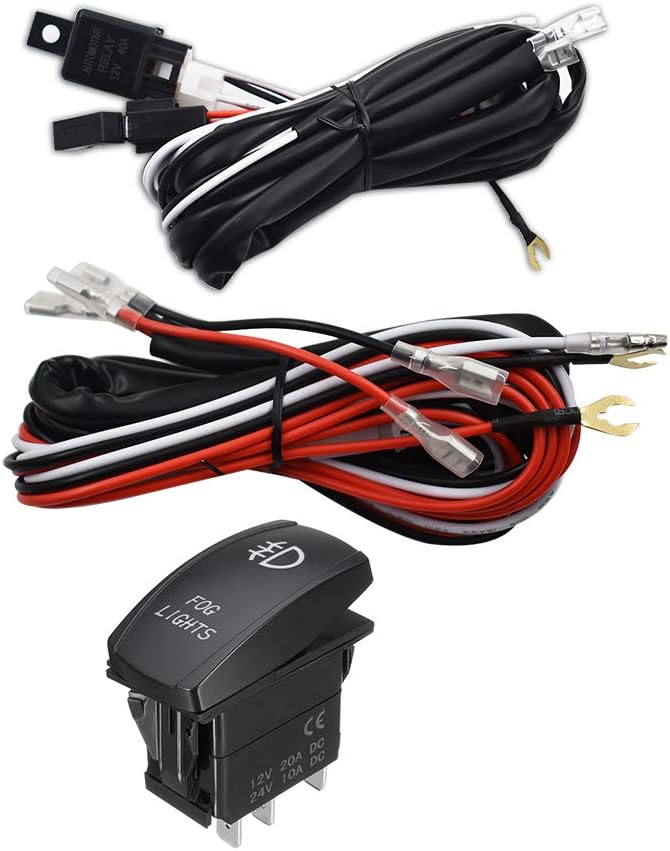 Image: Overview of the labwork 12V Universal Fog Light Wiring Harness kit.