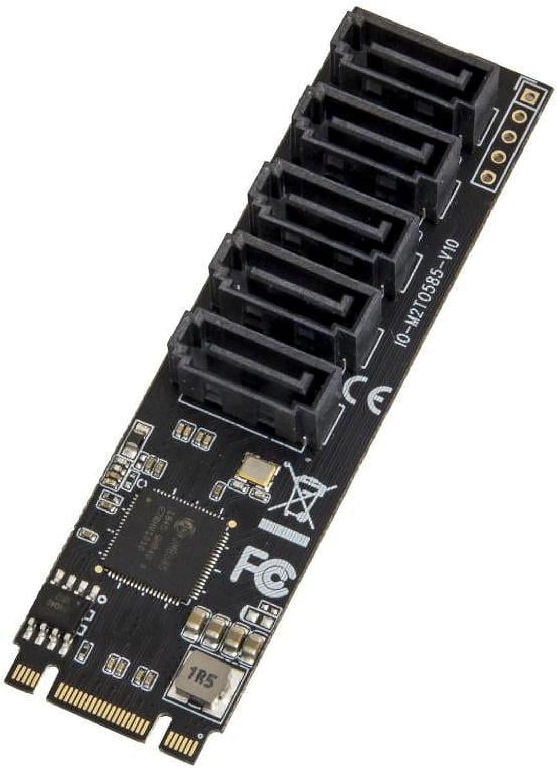 - Connects five SATA drives to an M.2 B+M Key connection, offering up to 1700 MB/s speed.