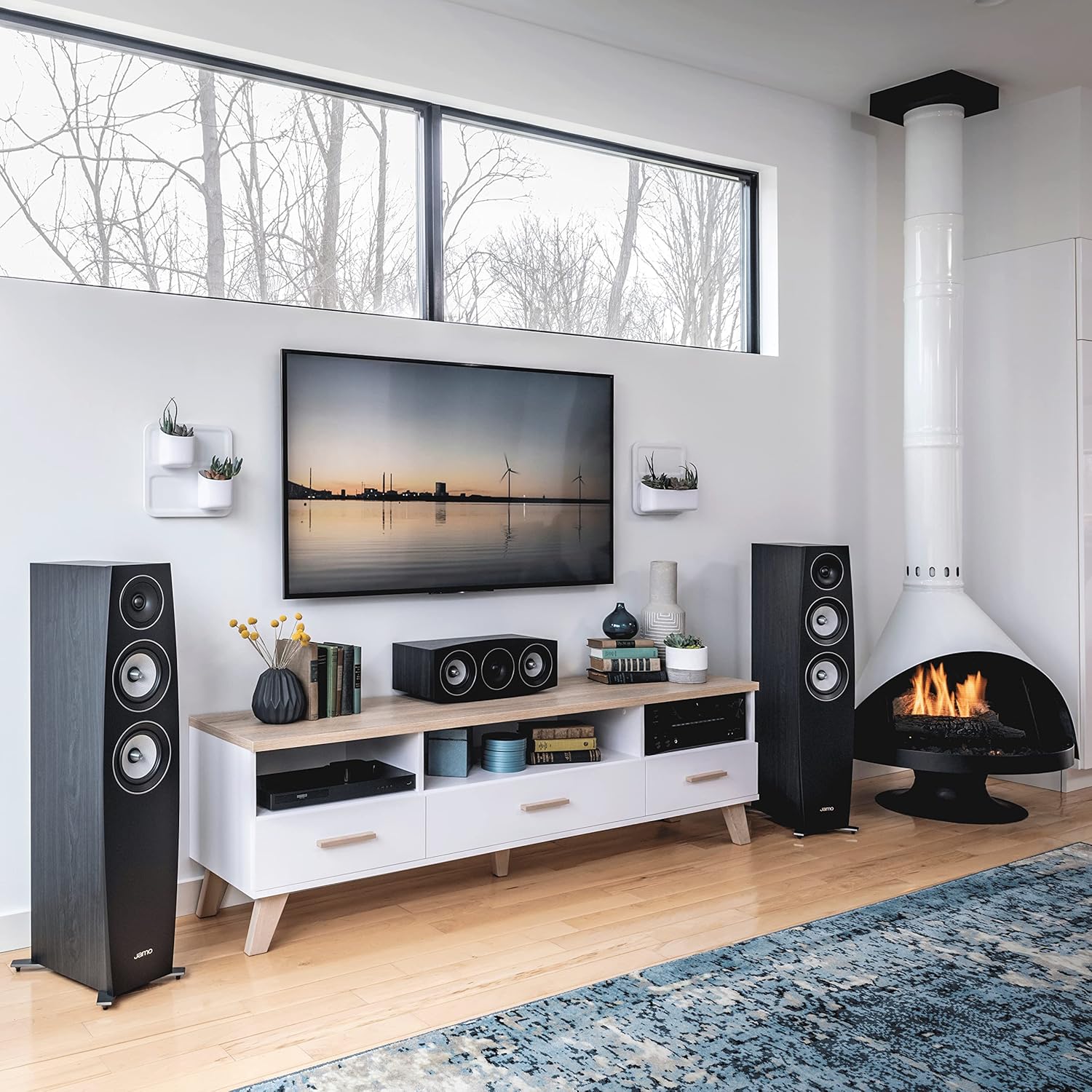 Image: Example of Jamo C95 II speakers positioned in a typical living room environment.