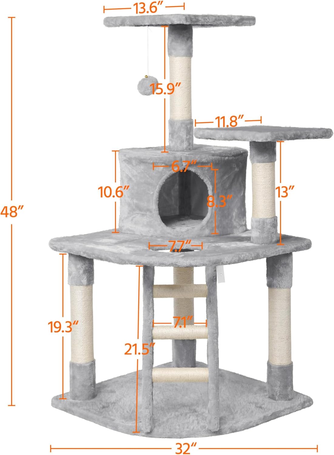 - Sisal Scratching Posts: Multiple posts wrapped with natural sisal rope provide an appropriate outlet for scratching, helping to protect your furniture.