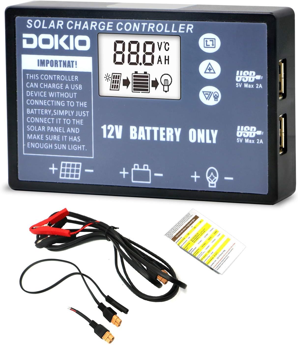 - 1 x DOKIO 10A/20A Solar Charging Controller