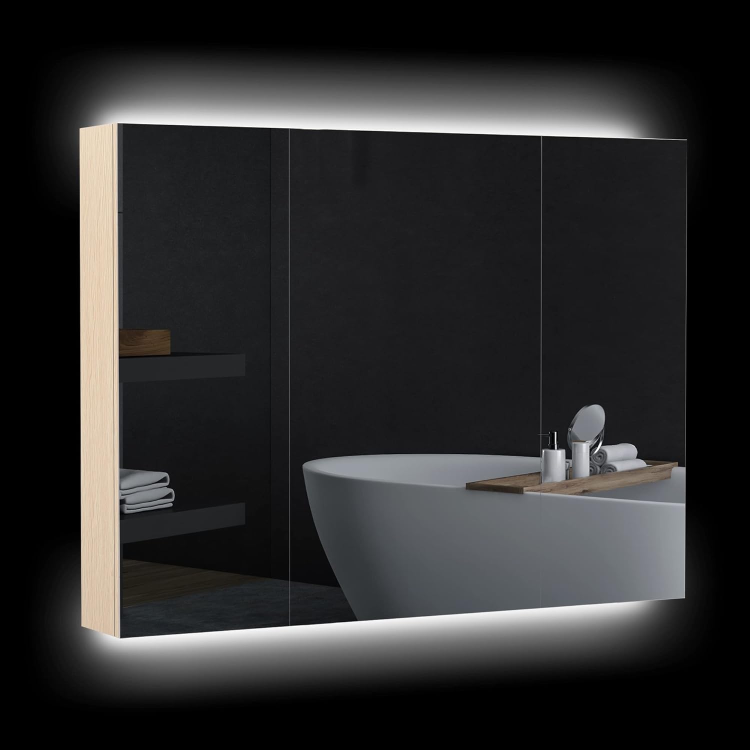 - Material: Engineered Wood, Mirror Glass, LED