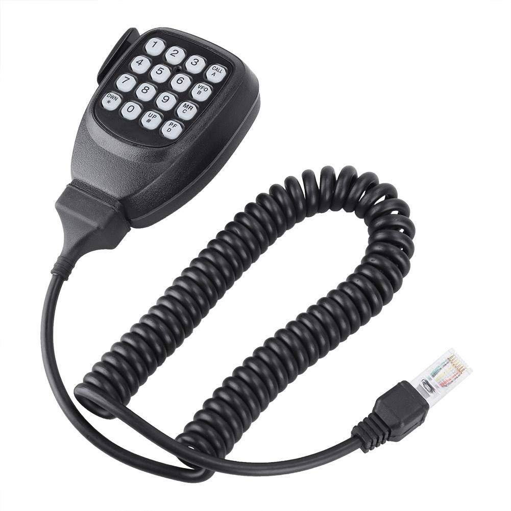 Figure 1: Tosuny TK8108 Speaker Microphone with Mini Keyboard. This image displays the complete speaker microphone unit, featuring the handheld microphone with an integrated keypad, a coiled cable, and an 8-pin modular connector.