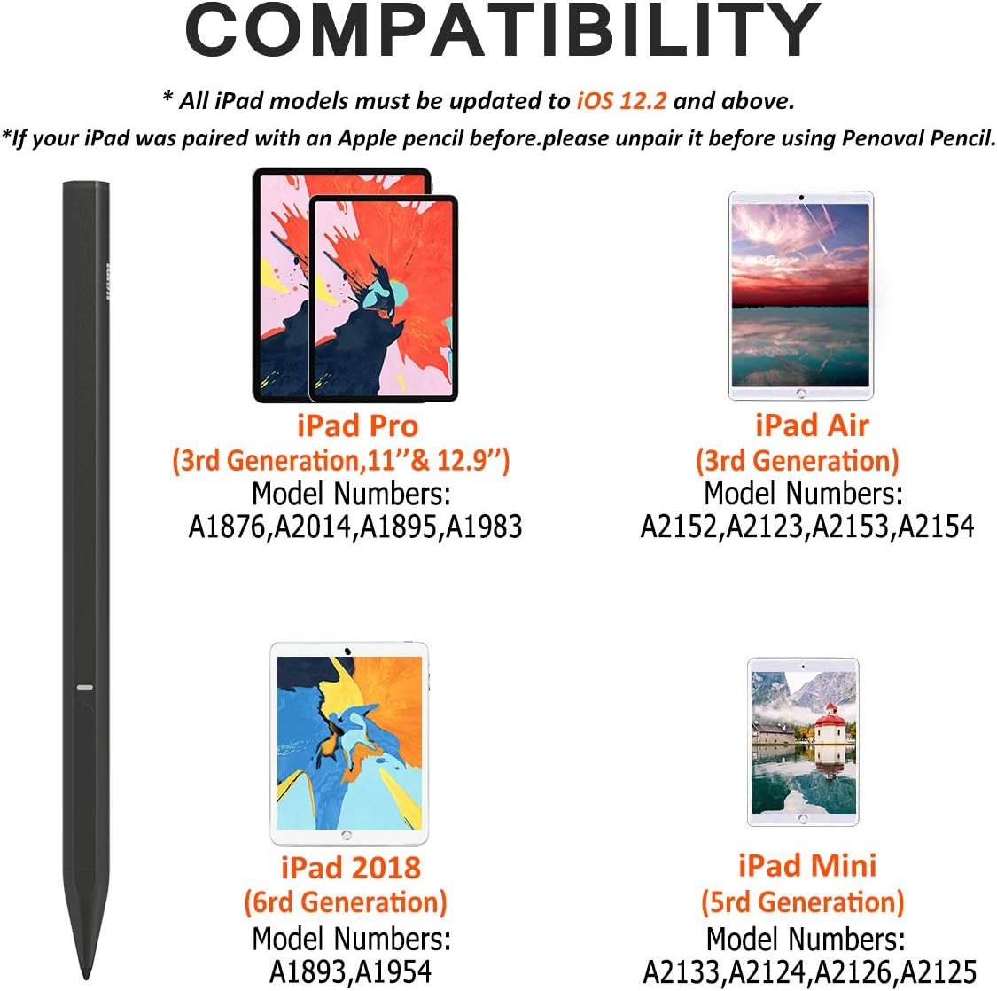 Image: Compatibility chart illustrating compatible iPad models and their specific model numbers.