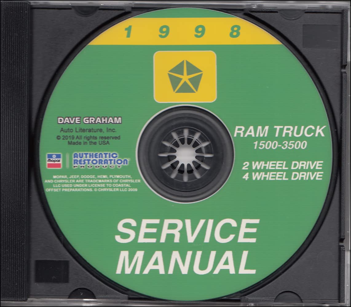 This document serves as an instruction manual for the 1998 Dodge Ram Pickup Truck Service Manual CD. This CD contains a factory-authorized reproduction of the original service manual, providing detailed information for the 1500, 2500, and 3500 series models. It is an essential resource for understanding the specifications, maintenance procedures, and repair processes for your vehicle.