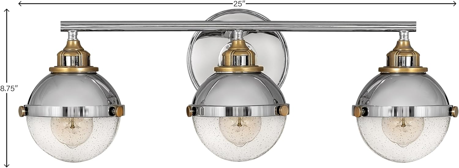 Figure 1: Product dimensions for the Hinkley Fletcher 3-light vanity fixture.