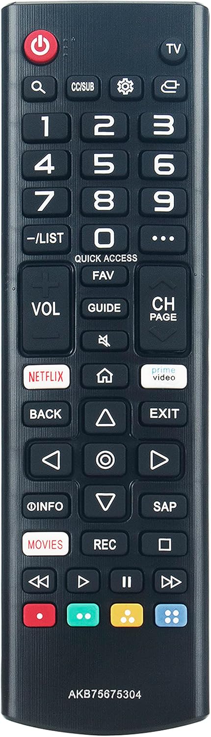 The AULCMEET AKB75675304 is a direct replacement remote control designed for a wide range of LG Smart TV models. It offers immediate functionality without the need for programming, providing a convenient solution for lost or damaged original remotes. This remote features an ergonomic design for comfortable handling and includes dedicated buttons for popular streaming services.