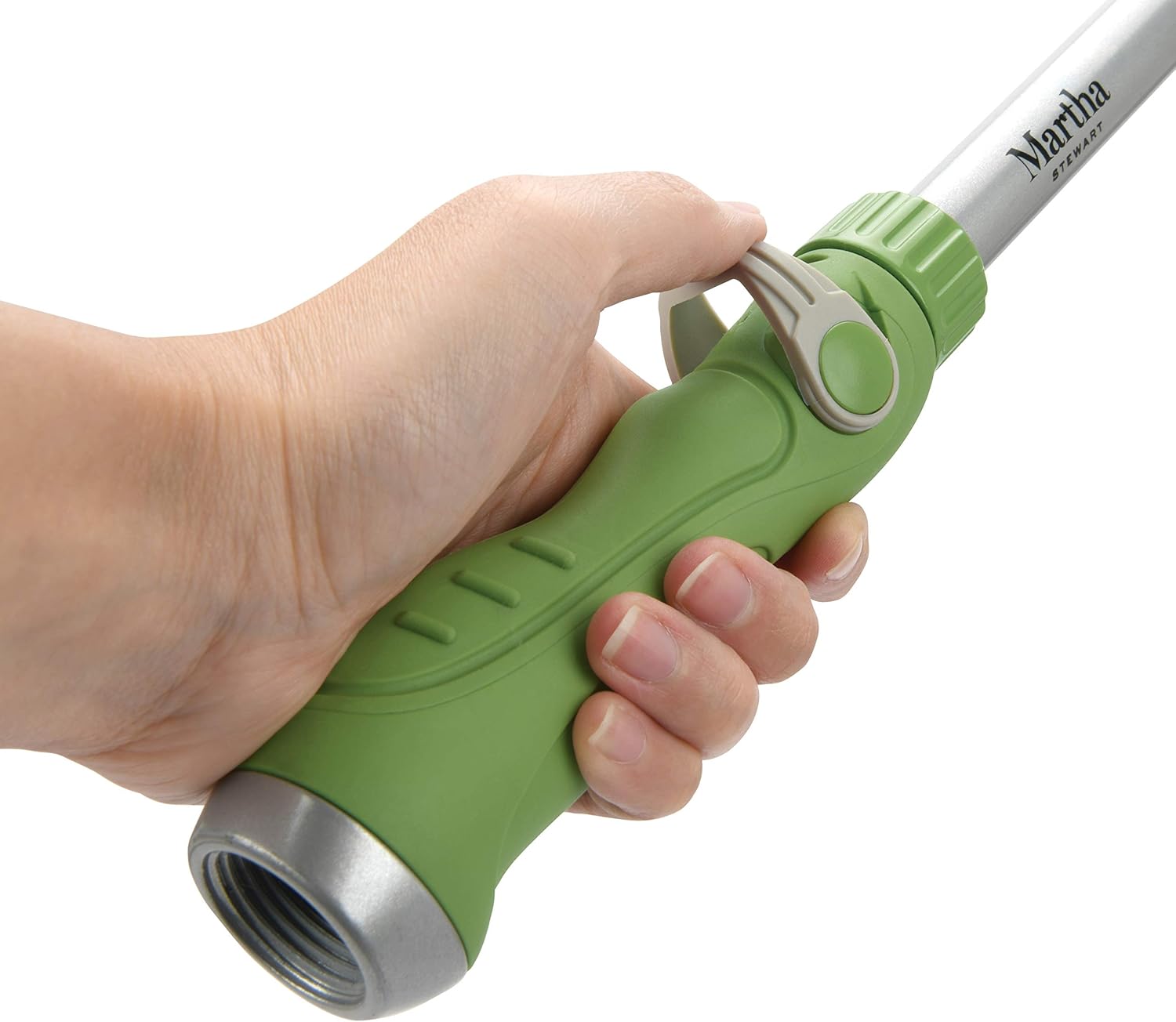 The Martha Stewart MTS-TSW31 Telescoping Watering Wand is designed to simplify watering tasks by providing extended reach and versatile spray patterns. This lightweight, durable aluminum wand allows users to water plants in hard-to-reach areas, such as high hanging baskets, far back garden beds, or low ground cover, without excessive bending or straining. It features an adjustable telescoping pole, a 180-degree ratcheting head, and 10 selectable spray patterns to suit various watering needs.