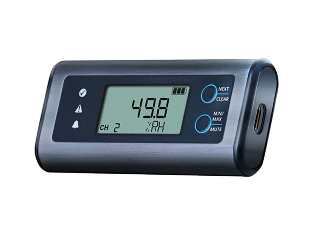 - Measures and records humidity and temperature from -18°C to 55°C using an internal sensor with ±0.2°C accuracy.