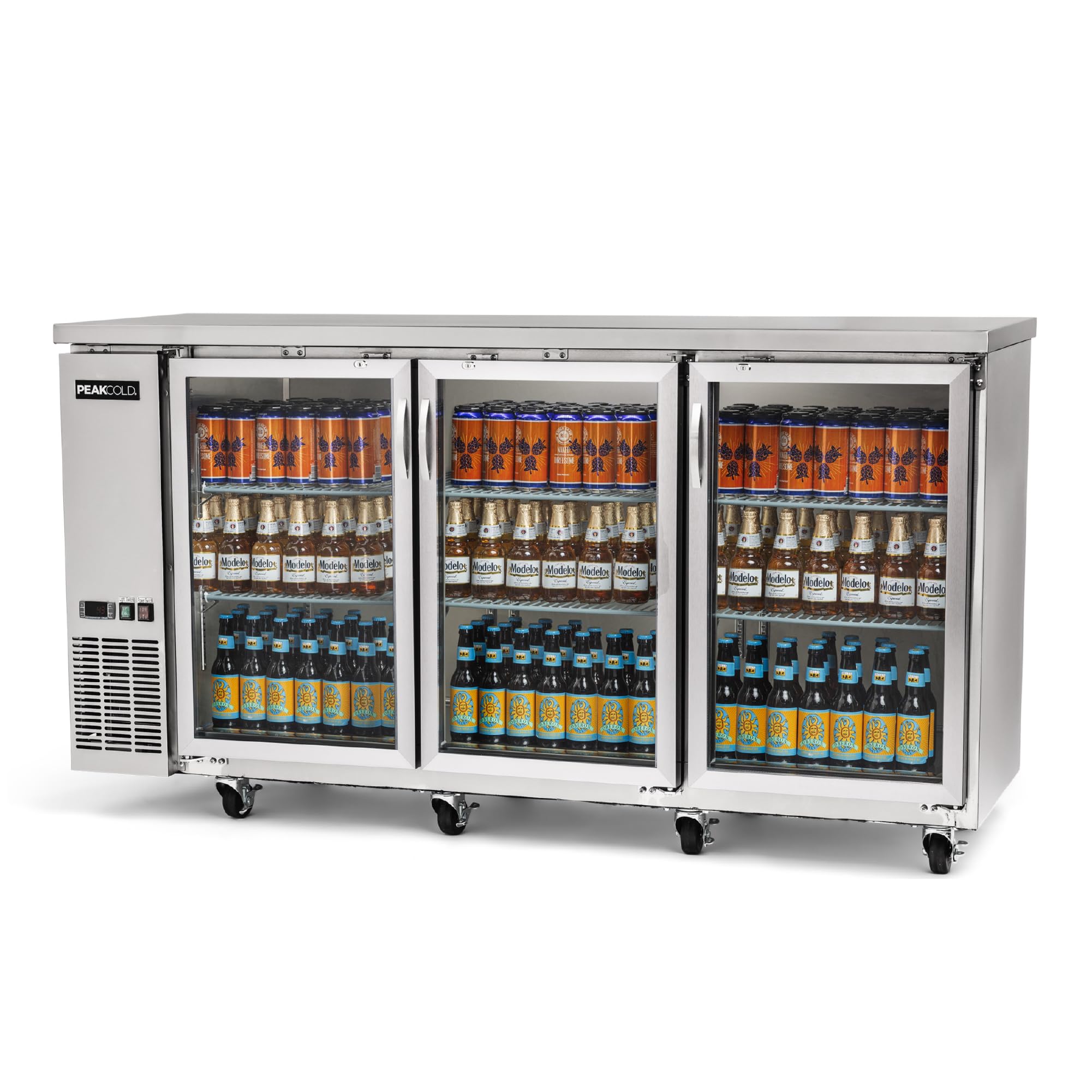 The PEAKCOLD 3-Door Counter Height Beverage Refrigerator is equipped with features designed for commercial use and optimal performance: