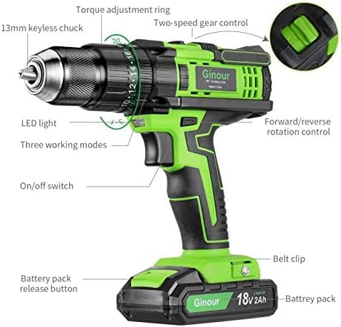 Your Ginour 18V Cordless Drill package includes a comprehensive set of accessories to support various applications. Please verify all items are present upon unboxing: