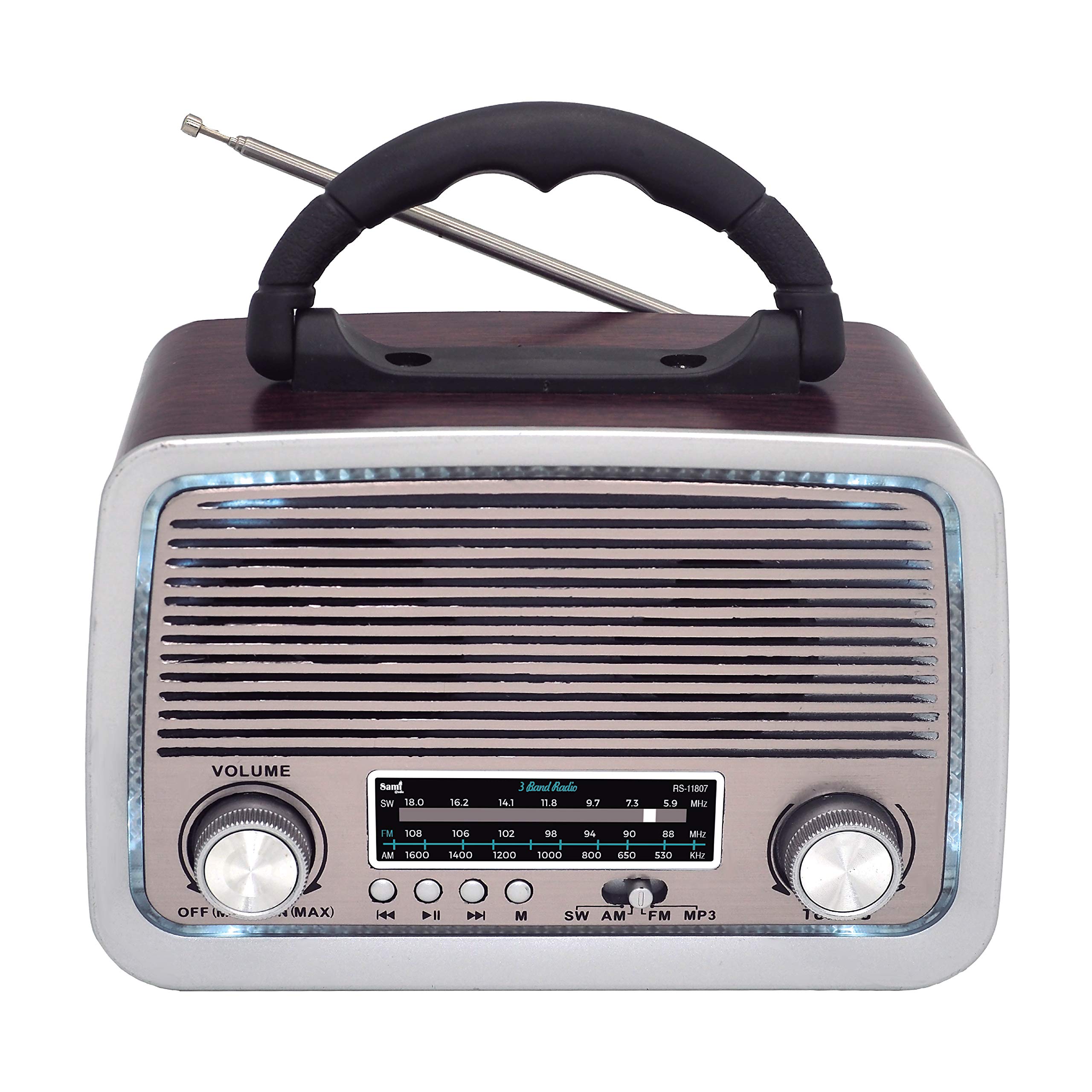 Thank you for purchasing the SAMI RS-11807 3-Band Radio. This portable analog radio offers versatile listening options with FM, AM, and SW bands, along with modern connectivity features including Bluetooth, USB, Micro SD, and Aux-In. It features a telescopic antenna for enhanced reception, an ambient LED light, and can be powered by its rechargeable battery or two UM-1 batteries (not included).