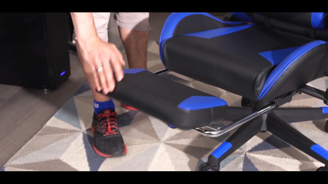 Image: The Goplus Gaming Chair with its footrest extended, demonstrating its retractable feature.