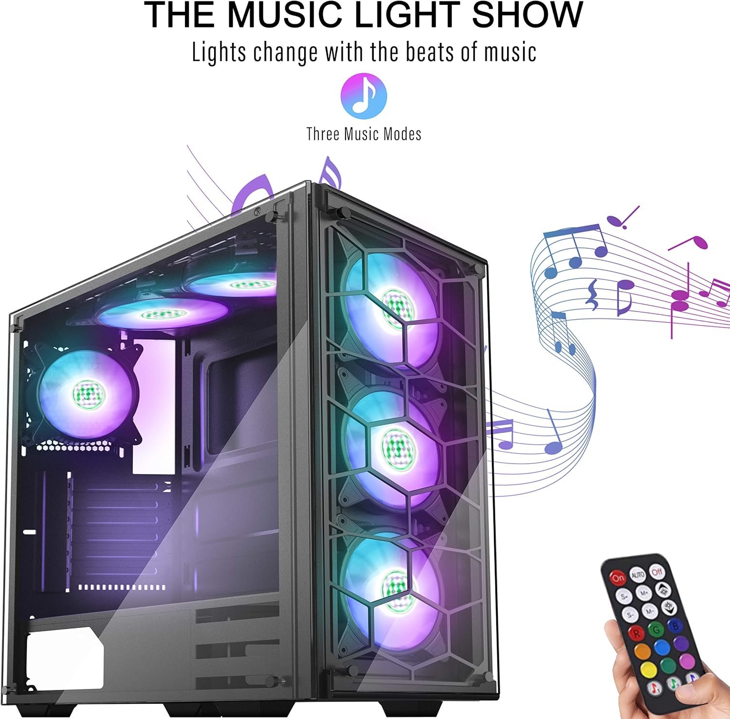The MUSETEX ATX Mid-Tower Case 907 is designed for gaming enthusiasts, featuring excellent airflow, vibrant ARGB lighting, and durable tempered glass panels.