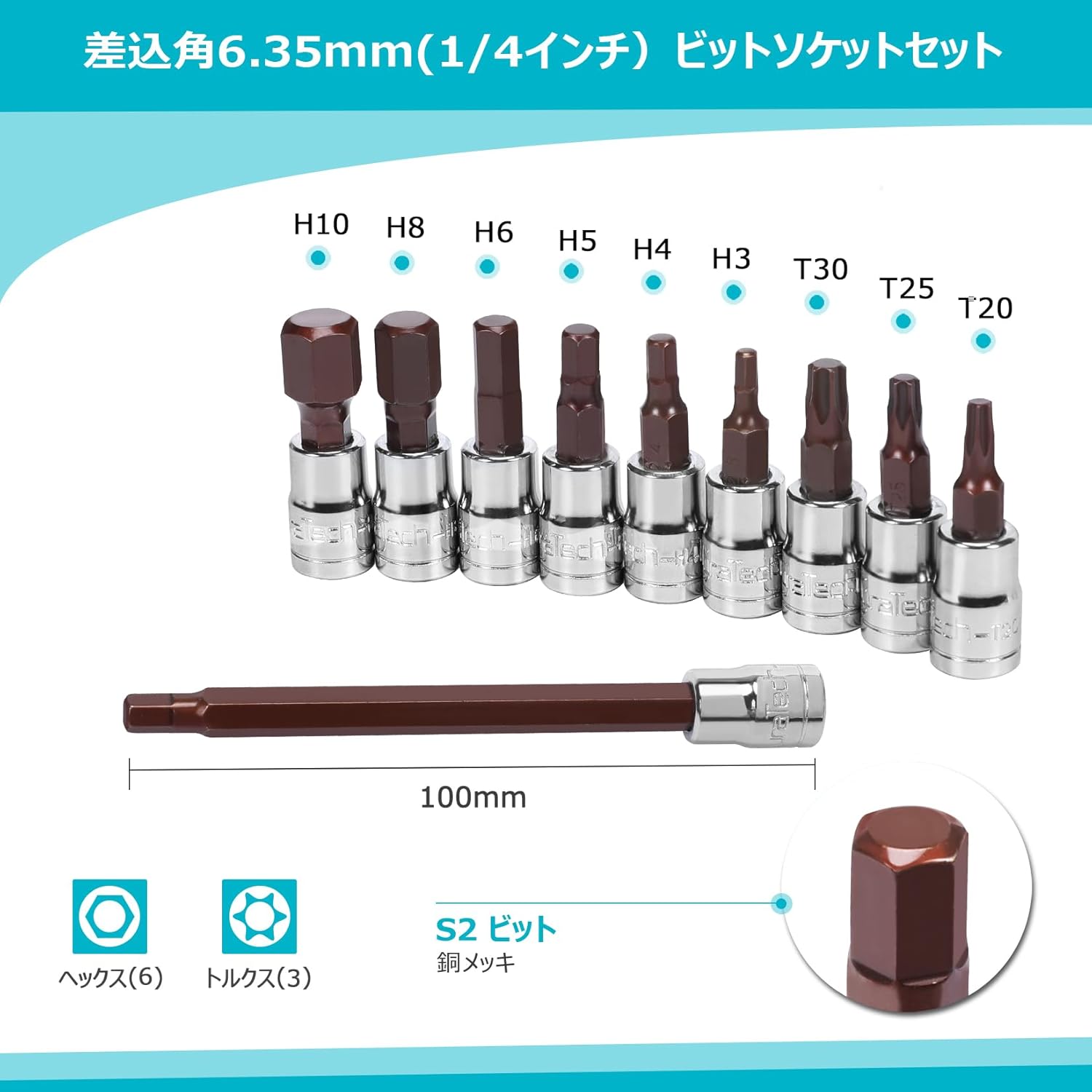 - 6x Hex Bit Sockets