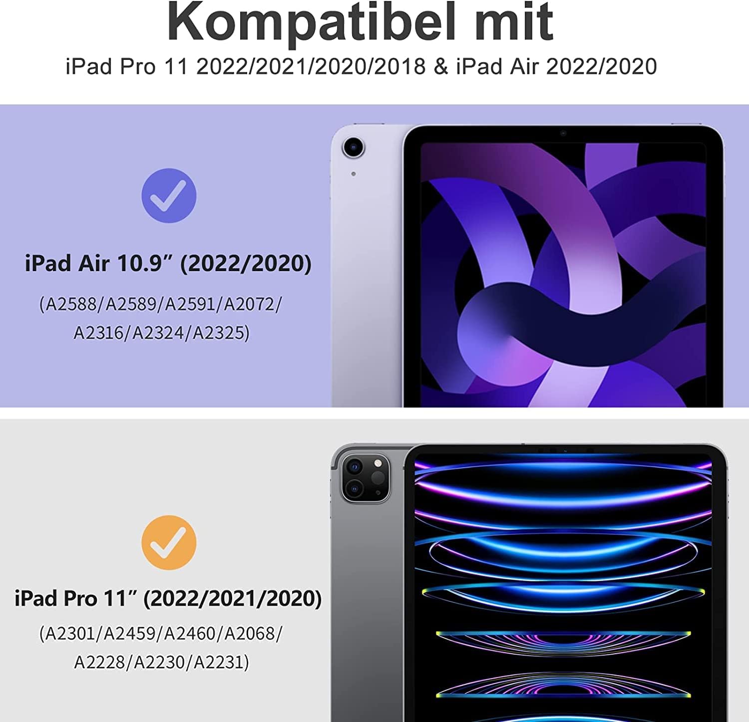 Image: Compatibility chart showing supported iPad Air 10.9 (2022/2020) and iPad Pro 11 (2022/2021/2020) models with their respective model numbers.