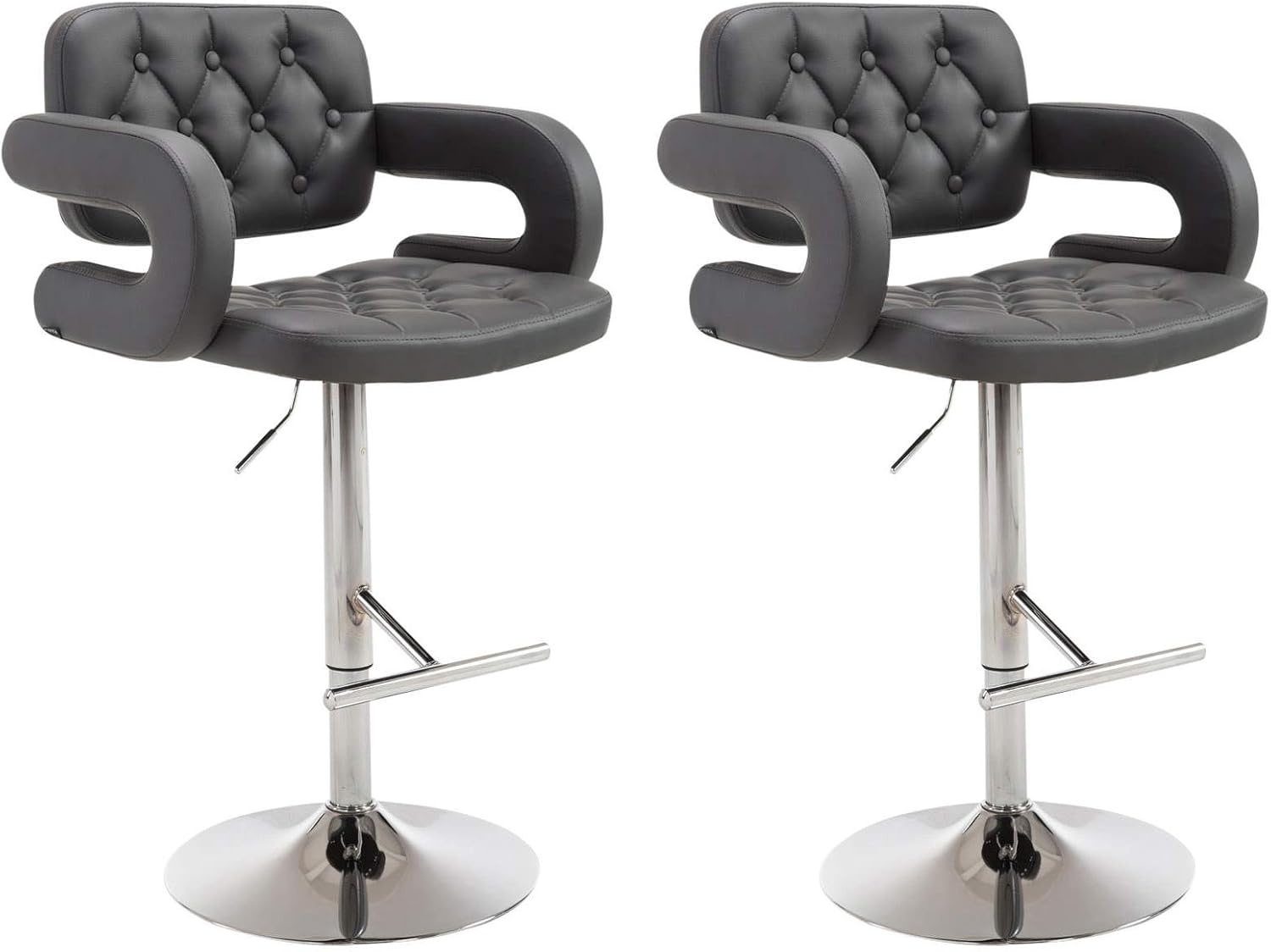 The CLP Dublin Bar Stool Set offers a comfortable and stylish seating solution. Each bar stool features a contoured seat upholstered in fine faux leather, complete with armrests and a backrest. The seat is generously padded for enhanced comfort and can swivel 360 degrees, allowing for flexible positioning.