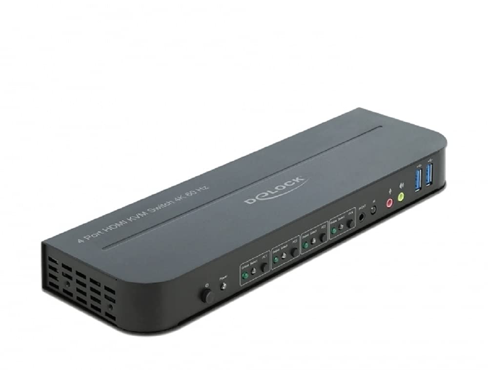 The DeLOCK 11483 KVM Switch is a practical solution designed to connect up to four computers, each with an HDMI output, to a single HDMI monitor. This device allows for seamless sharing of a single set of peripheral devices, including a keyboard and mouse, across multiple computers.