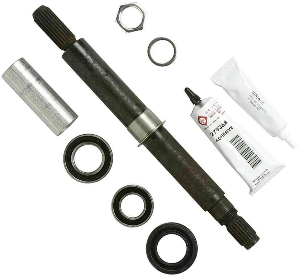 - Included Components: Main shaft, 2 bearings, 1 tub seal, retaining nut, metal sleeve, grease, adhesive.