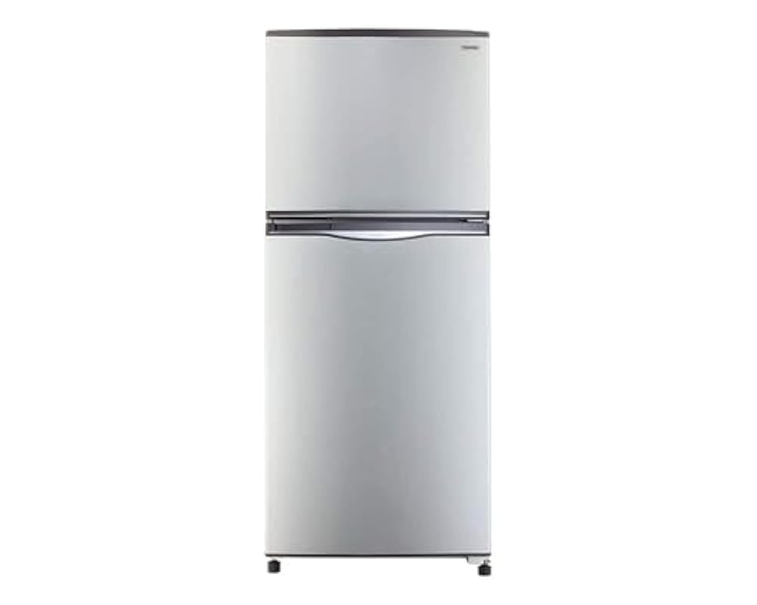 Image: Toshiba GR-EF31-S No Frost 2-Door Refrigerator in Silver. This image shows the front view of the refrigerator, highlighting its two-door design and silver finish.