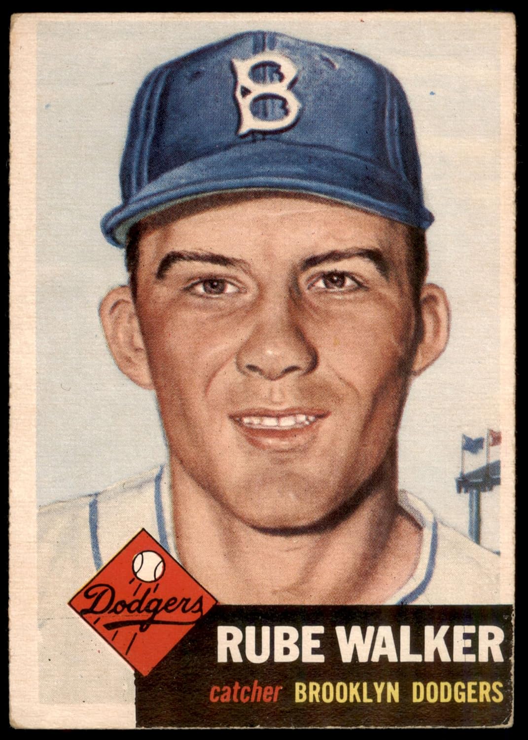 The 1953 Topps set is renowned for its vibrant artwork and classic design, making cards from this series highly sought after. This particular card features Rube Walker, a catcher for the Brooklyn Dodgers.