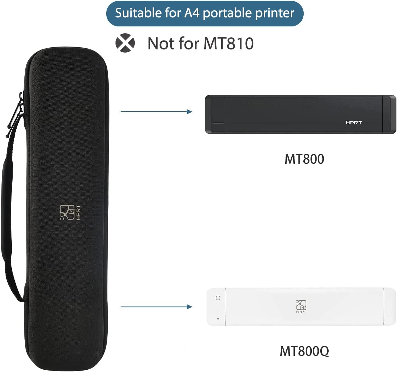 This case is designed exclusively for HPRT MT800 and MT800Q Mobile A4 Thermal Printers. It is not compatible with other printer models, including the MT810.