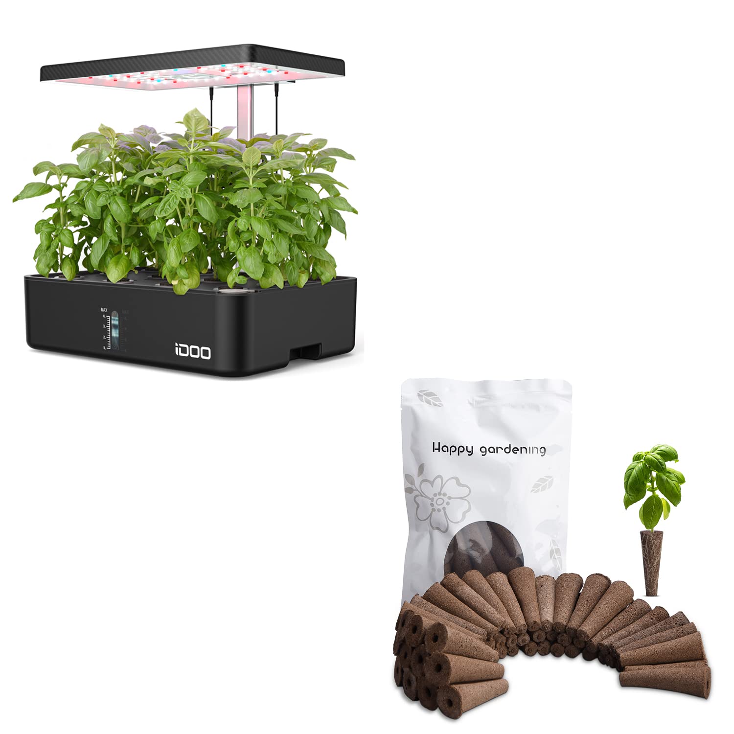 The iDOO Hydroponics Growing System Kit is designed for indoor plant cultivation, allowing you to grow various herbs, vegetables, fruits, and flowers without soil. This system utilizes an integrated water pump for aeration, a fan for air circulation, and adjustable LED lights to promote rapid plant growth.