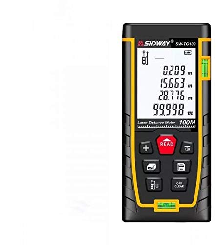 The SNDWAY SW-TG100 is a compact and ergonomic laser distance meter. Below is an image illustrating the device's general appearance.