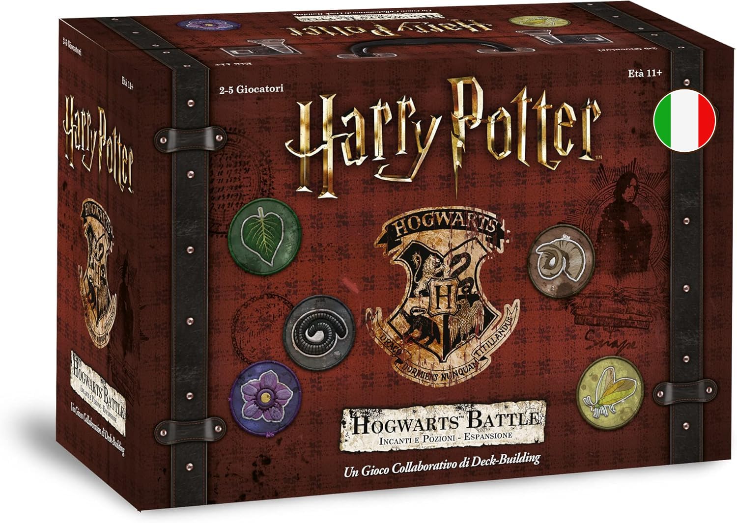 The Incantes y Pociones expansion introduces new elements to the collaborative deck-building gameplay of Harry Potter Hogwarts Battle, allowing players to cast Incantes and brew Potions to overcome challenges.