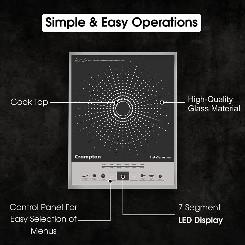 The Crompton Greaves Instaserve Induction Cooktop is designed for efficient and convenient cooking. Key features include: