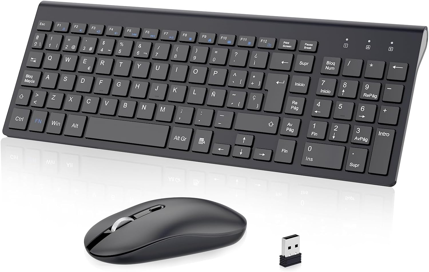 - Full-Size Layout: The keyboard features a full-size layout with 102 keys (Spanish QWERTY layout), including a numeric keypad for efficient data entry.