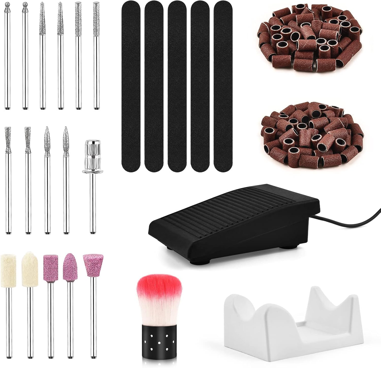 This image displays the main components and accessories included with your JUEMEL M8868 nail drill, ensuring you have all necessary tools for operation.