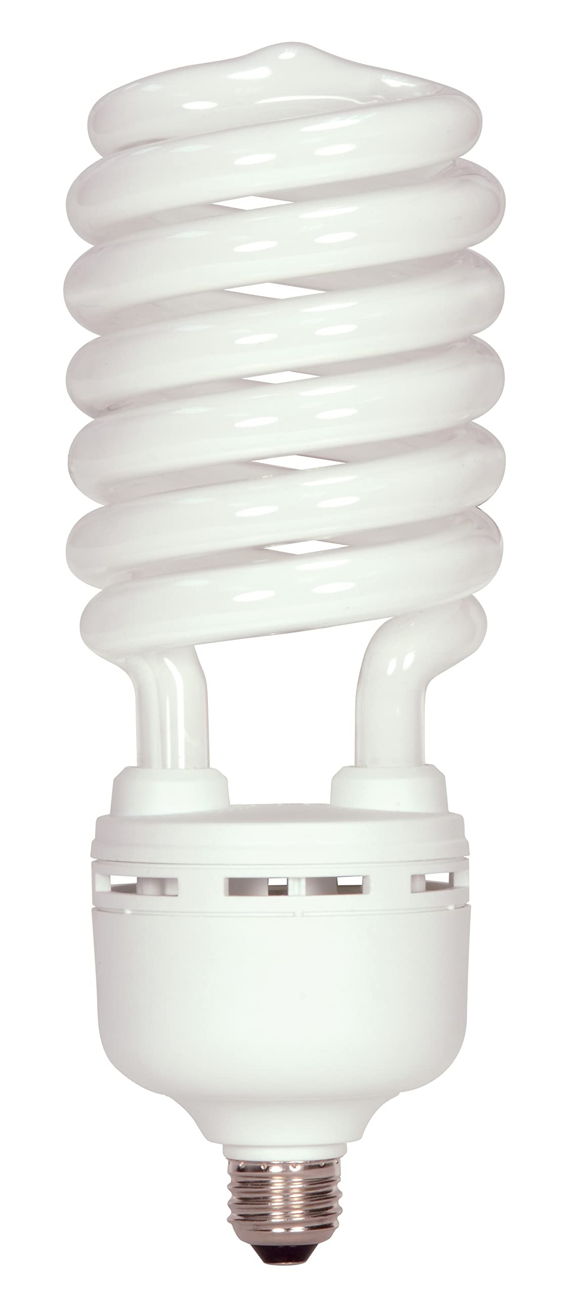 Image: The Satco S7377/02 Hi-Pro 105 Watt T5 Spiral Compact Fluorescent Light Bulb, featuring its distinctive spiral design and E26 screw-in base.