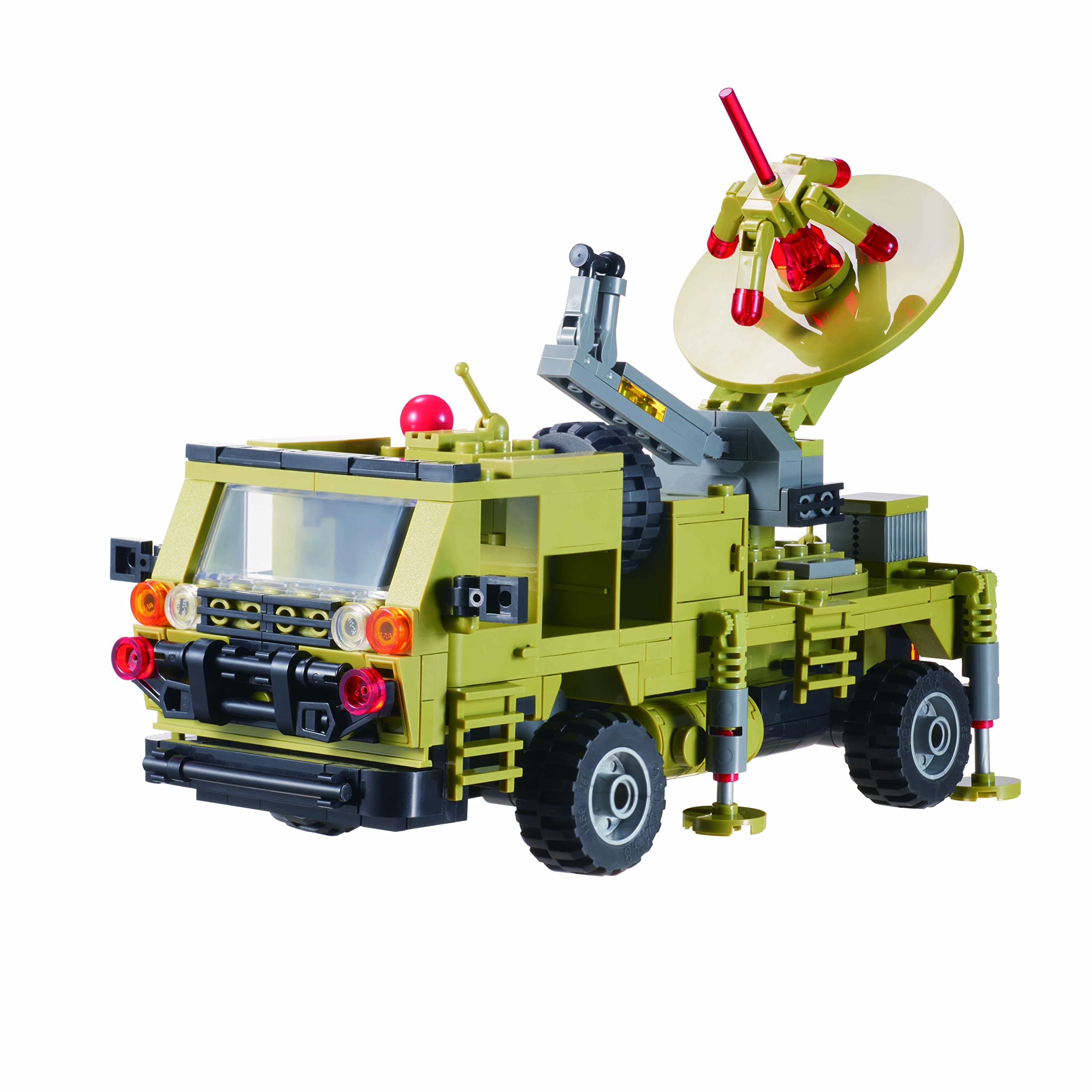 Image 1: The fully assembled W WISE BLOCK Military Radar Truck, showcasing its detailed design and radar unit.