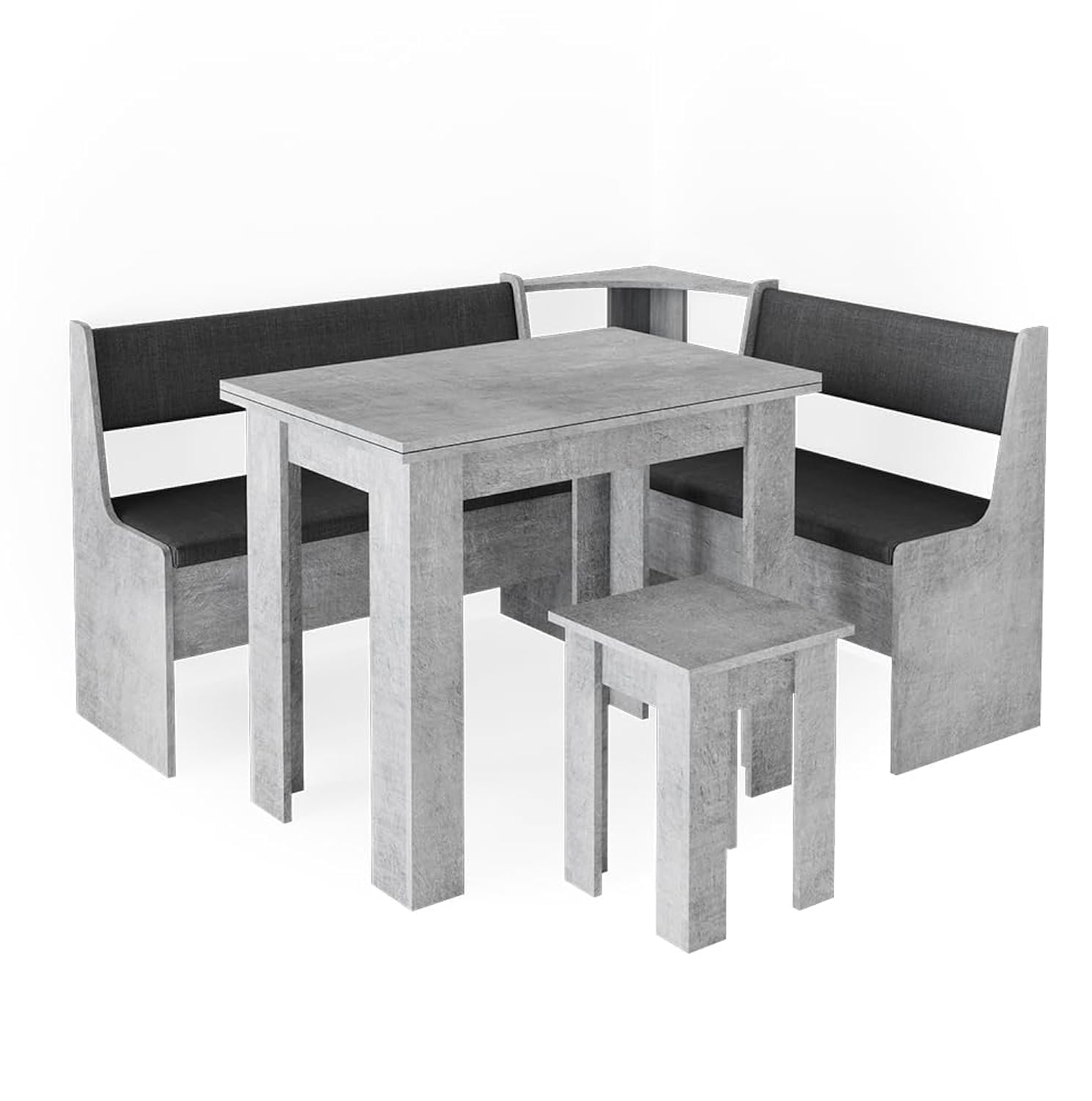 Image 1.1: The Vicco Roman Corner Dining Bench Set, featuring a corner bench, table, and stool in a concrete/anthracite finish.