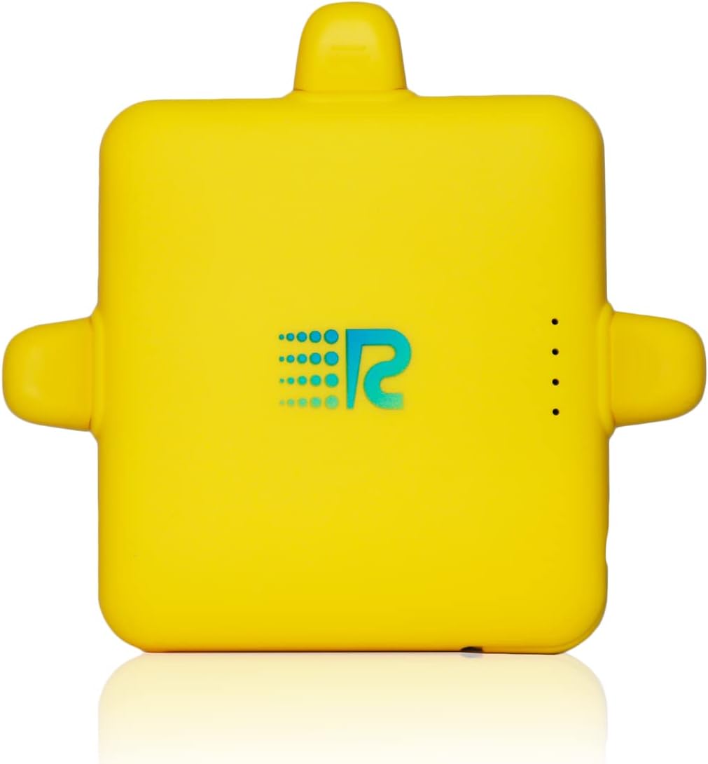 Figure 2.1: Front view of the yellow Rush Charge Trident 3-in-1 Wireless Power Bank, showing its compact square shape and the Rush Charge logo.