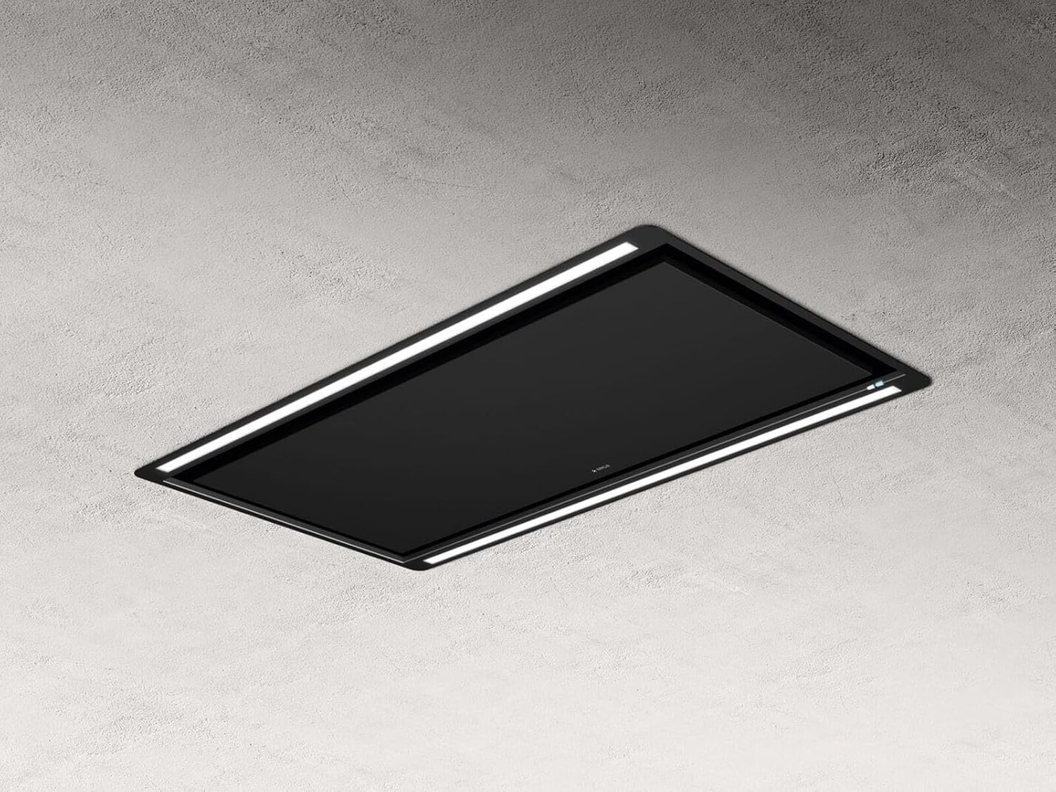 Image 1: The Elica HILIGHT-X H16 Ceiling Hood seamlessly integrated into a kitchen ceiling, showcasing its sleek, minimalist design.
