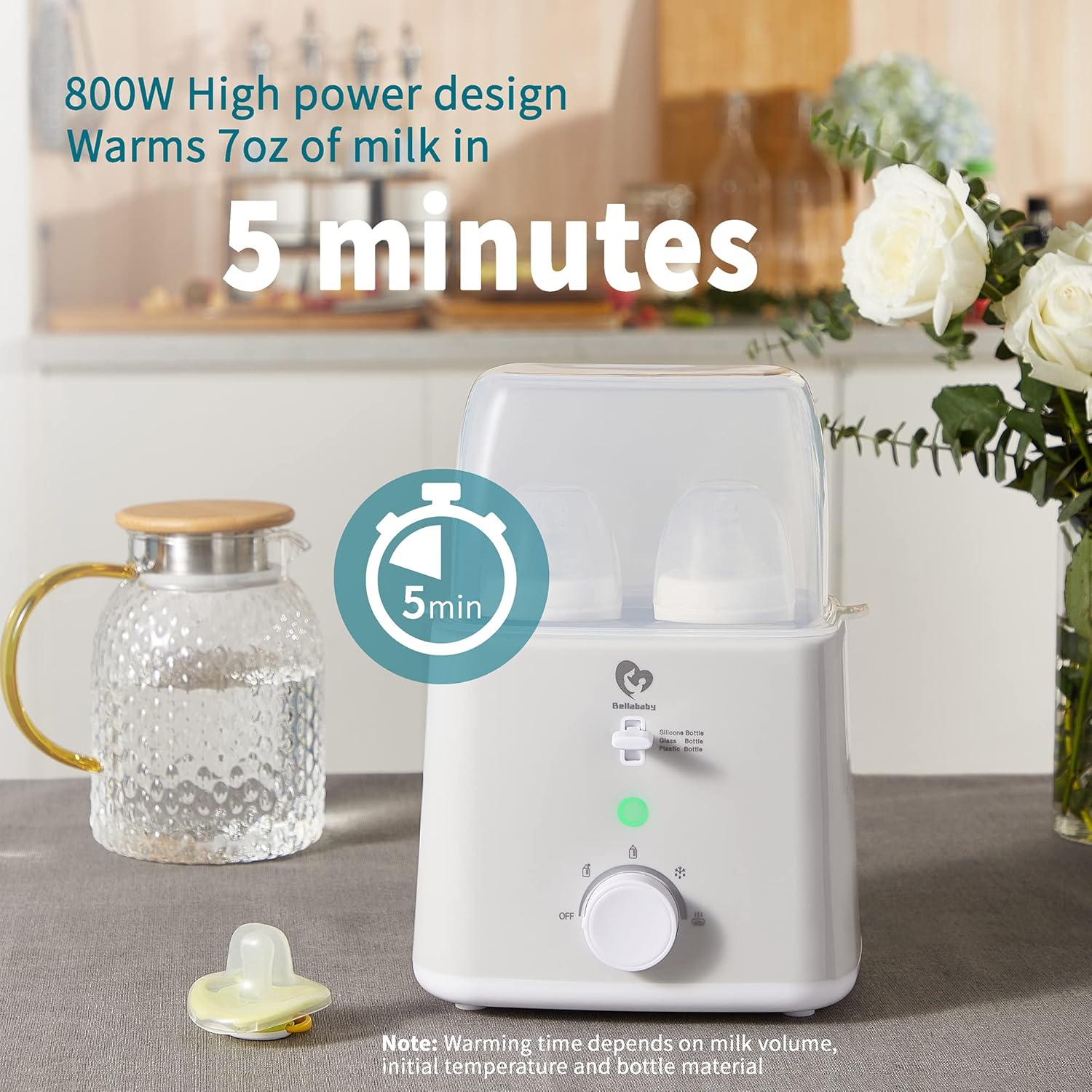 - Fast Warming: Warms 7 ounces of milk in approximately 5 minutes.