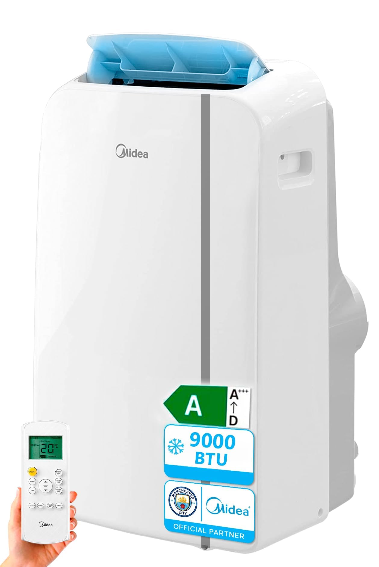 The Midea MPPDA-09CRN7-QB7G1 is a versatile portable air conditioner designed for cooling and heating residential spaces. It features a dual filtration system, a 24-hour timer, and a 'Follow Me' function for enhanced comfort.