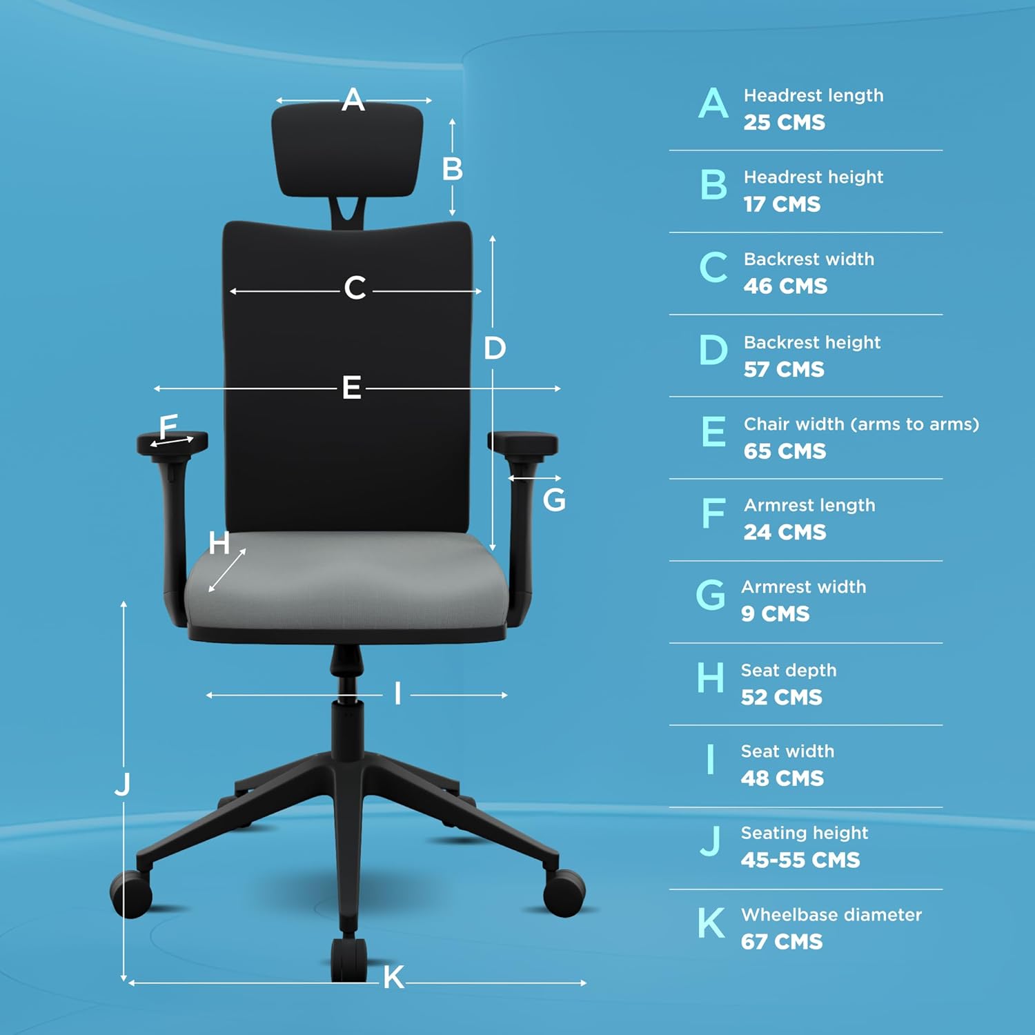 | Seat Height | 55 Centimetres (Adjustable) |
