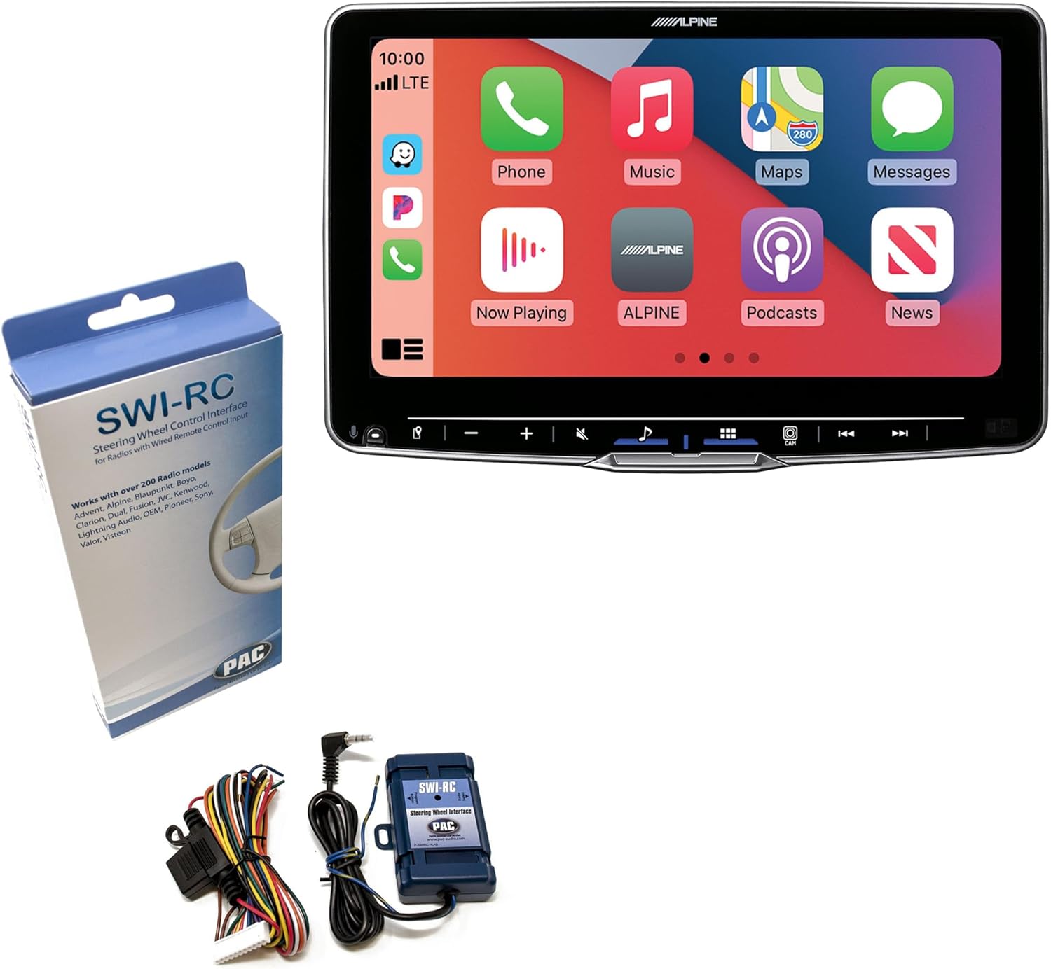 The PAC Audio SWI-RC is an interface module that allows retention of factory steering wheel control functions when an aftermarket radio, such as the Alpine iLX-F509, is installed. It is compatible with most radios equipped with a wired remote control input.