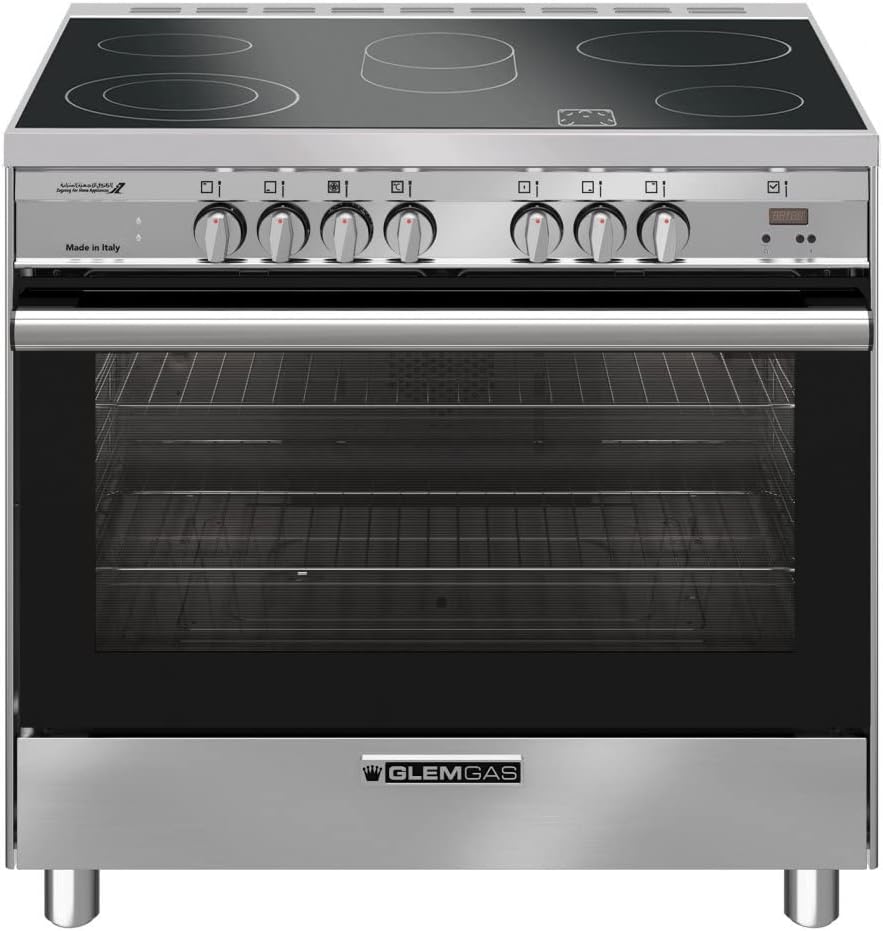The Glem Gas Ceramic Electric Oven SB9624VI is a freestanding appliance featuring a ceramic hob with 5 burners and a multi-function electric fan oven. It is designed for efficient and versatile cooking.