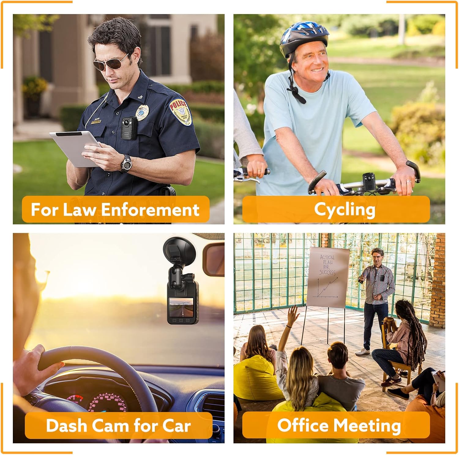 Comes with multiple rotatable clips and a suction cup mount, allowing for flexible attachment as a body-worn camera (on uniforms, backpacks) or as a dash camera in a vehicle.
