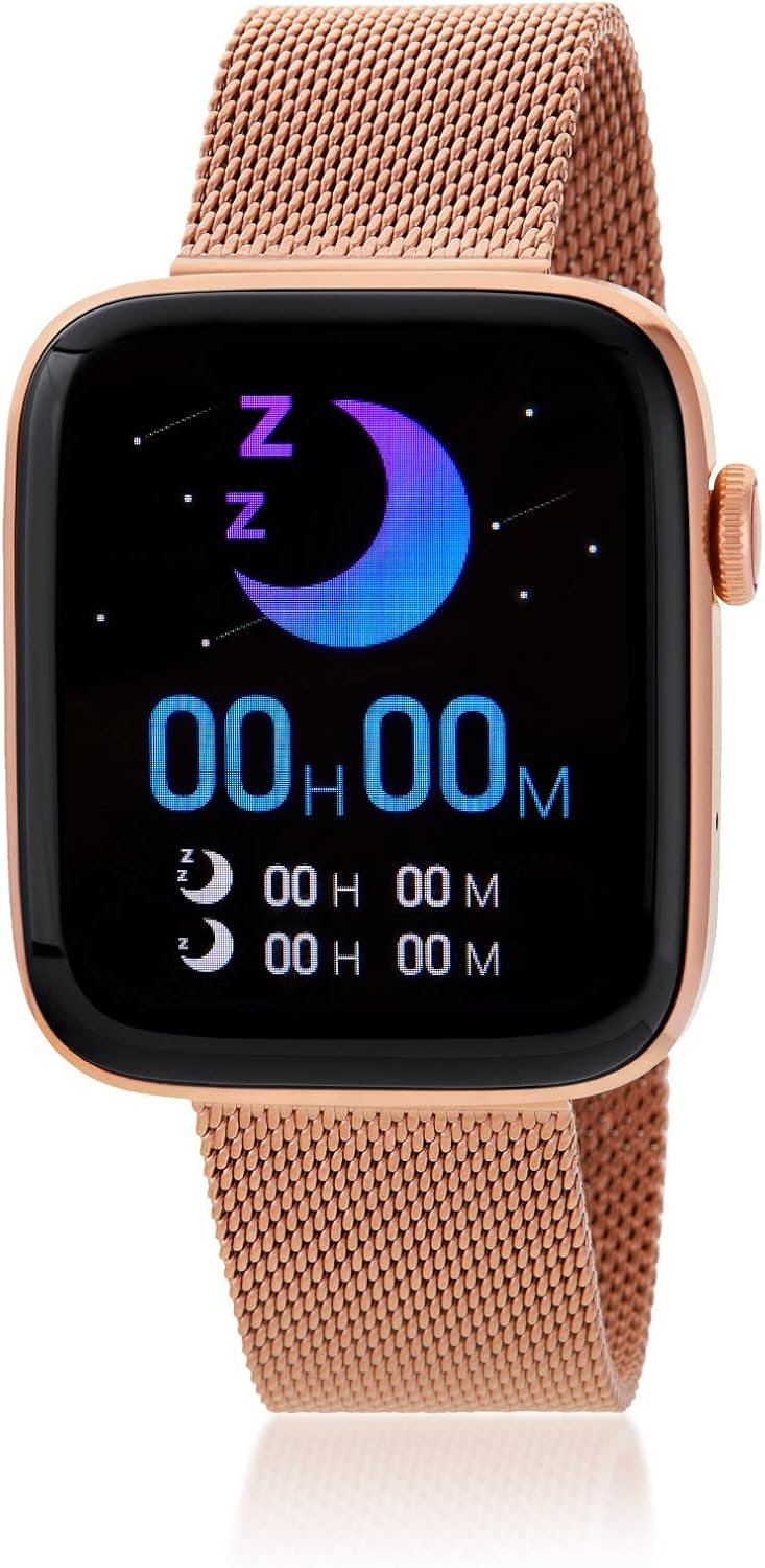Image: The Marea Smartwatch B58010 with a rose mesh strap, displaying a sleep tracking interface with a crescent moon icon and 'Z' symbols, indicating sleep monitoring functionality.
