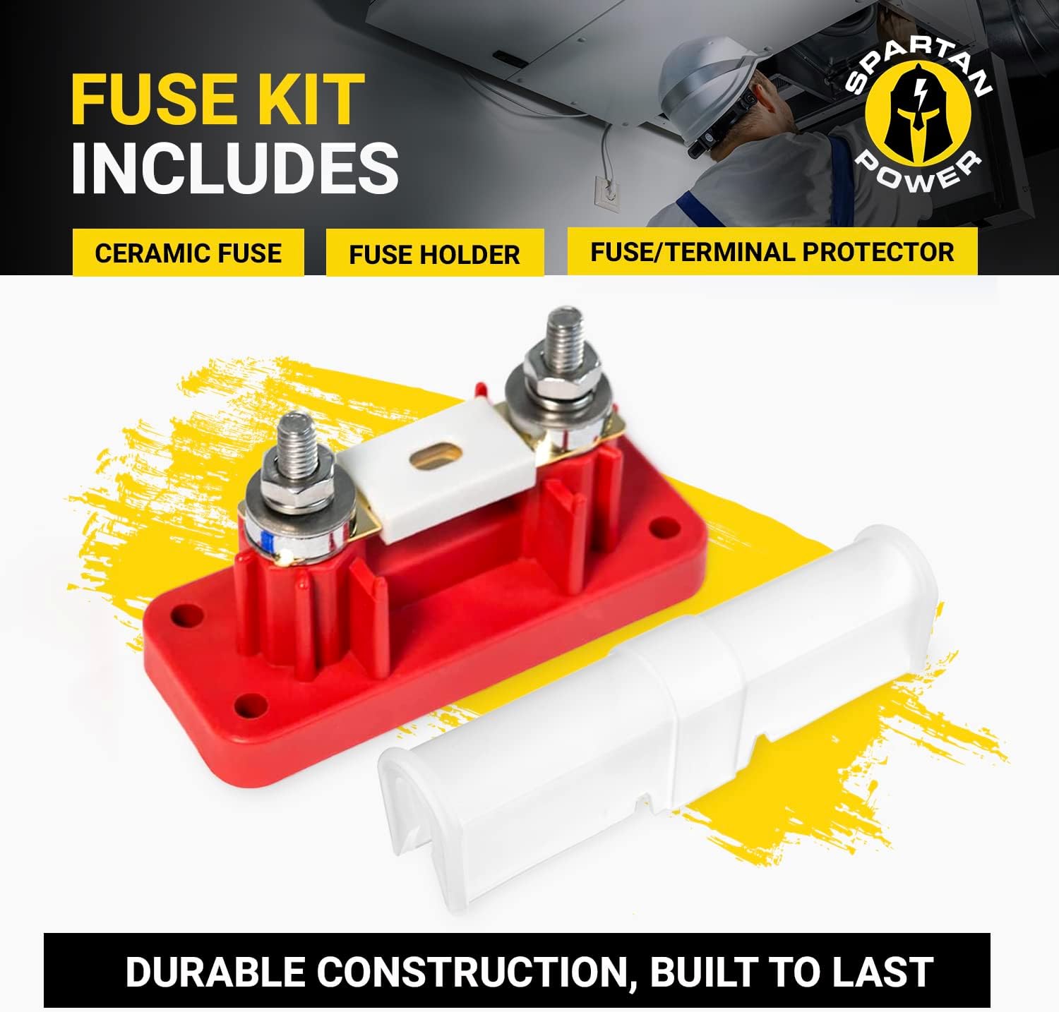 The Spartan Power ANL Fuse and Holder Kit is designed to protect DC electrical systems from overcurrent conditions. It features a robust construction suitable for various applications, including power inverters, solar charge controllers, audio systems, marine, automotive, RVs, and trailers.
