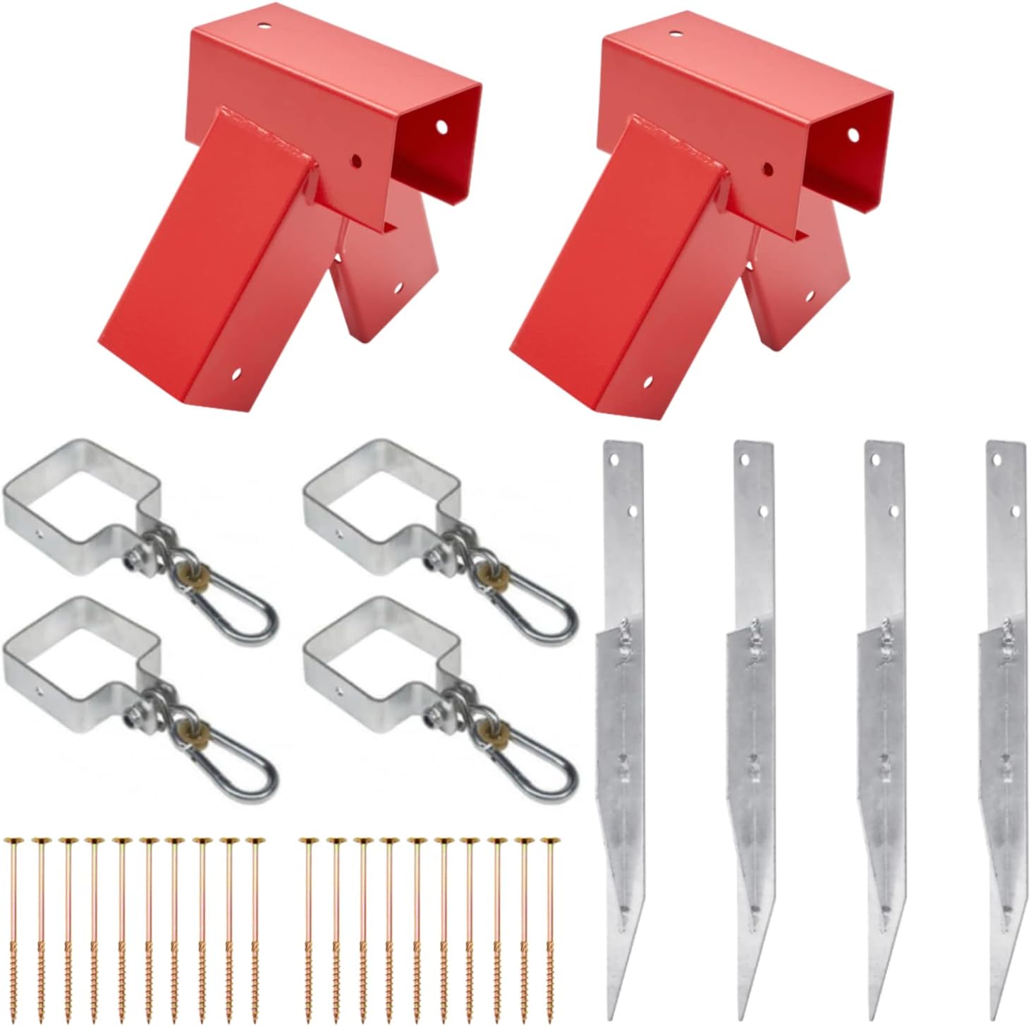 - Four (4) Post Shoes/Ground Anchors: For securing the swing frame to the ground.