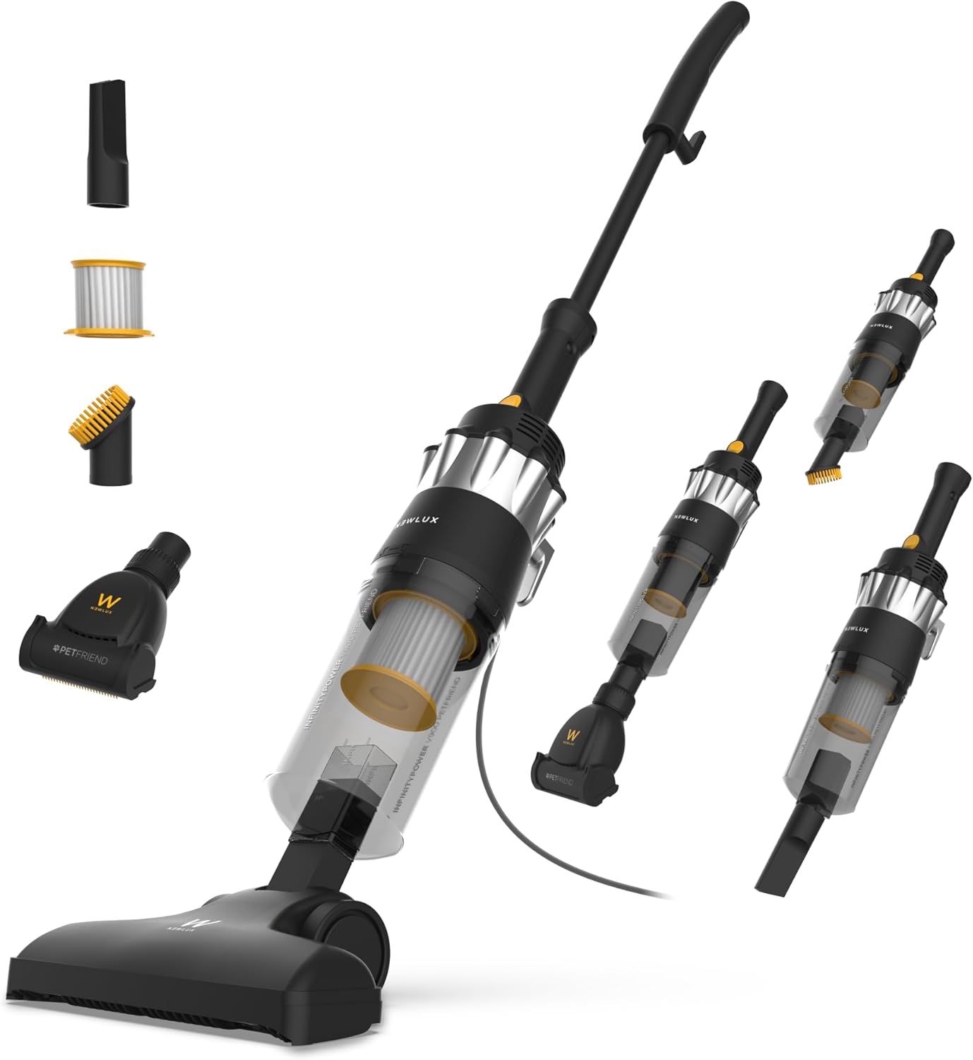 Welcome to the NEWLUX V900 2-in-1 Corded Stick Vacuum Cleaner. This versatile appliance is designed for efficient cleaning of various surfaces in your home. It functions as both a powerful stick vacuum and a convenient handheld unit. Please read this manual thoroughly before first use to ensure proper operation and maintenance.