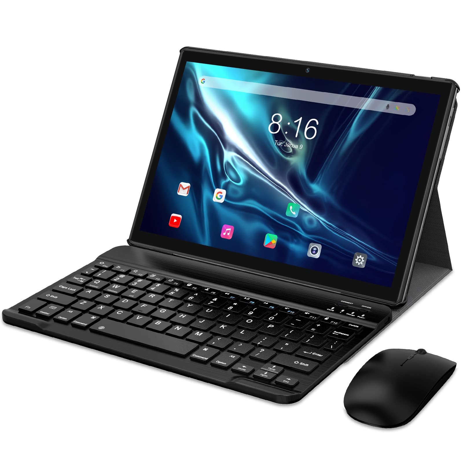 The YOTOPT K110W is a 10.1-inch Android 11 tablet designed for various applications, from entertainment to productivity. It features a 1.8GHz processor, 4GB RAM, and 64GB internal storage, expandable up to 128GB via a microSD card (not included).